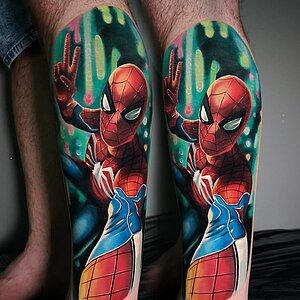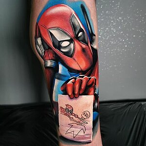 Wenn Mati tätowiert, weiß man, dass es bunt wird. Zu seinen Spezialitäten gehören Comic Tattoos.