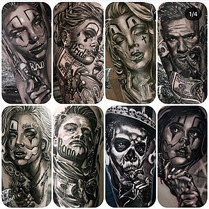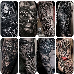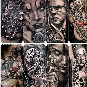 Realistic , Nordic Dotwork, Fantasy, Biomechanik, Trashpolka, Black & Grey