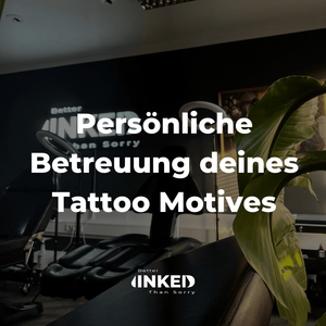 Du bist dir noch nicht sicher, wie dein Motiv umgesetzt werden soll? Wir bieten dir eine kostenlose Beratung, sowohl vor Ort in unserem Tattoo Studio in Düsseldorf als auch online. Unsere erfahrenen Tätowierer nehmen sich Zeit, um mit dir dein individuelles Tattoo Design zu besprechen und dir alle Fragen zu beantworten. Schreib' uns einfach bei WhatsApp, wann es dir am besten passt.