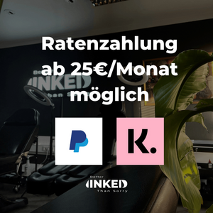 Tattoo-Träume sollten nicht am Budget scheitern. Daher bieten wir flexible Zahlungsmethoden an, einschließlich Barzahlung und Ratenzahlung per PayPal und Klarna, damit dein Tattoo auch finanziell für dich machbar ist.