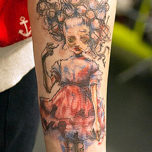 Sandy Lee tätowiert, seitdem er 22 ist. Comic, Black & Grey, Kalligraphie, NewSchool, Tierportraits sid seine favorisierten Stile.