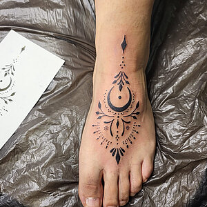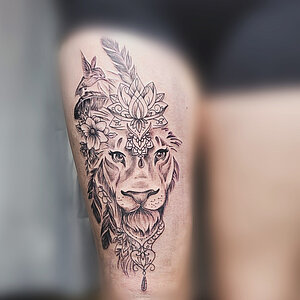 Jana hat sich auf Sketchstyle, Lettering, Blackwork und Fineline sowie Mandala spezialisiert. Sie versucht sich jetzt auch in Farbe.
