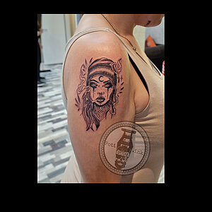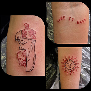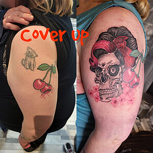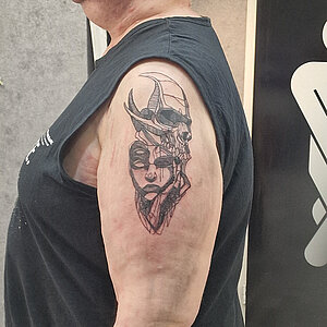 Jill hat sich auf Sketchstyle, Dotwork, Farbe und Realistic sowie Cover up und Fresh up spezialisiert.