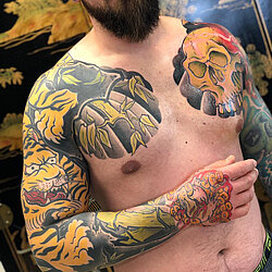 Team of award winning Tattoo Artists from around the World for Tattoo Art. We offer you, unique custom work tattoos designed on your body just for you.