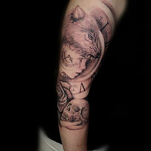 Wir sind mehrere Tätowierer, sodass der Kunde nach Künstler-Stil und Sympatie wählen kann. Wir legen sehr viel Wert darauf, dass jeder gleich behandelt wird und man sich wie zu Hause fühlt.
